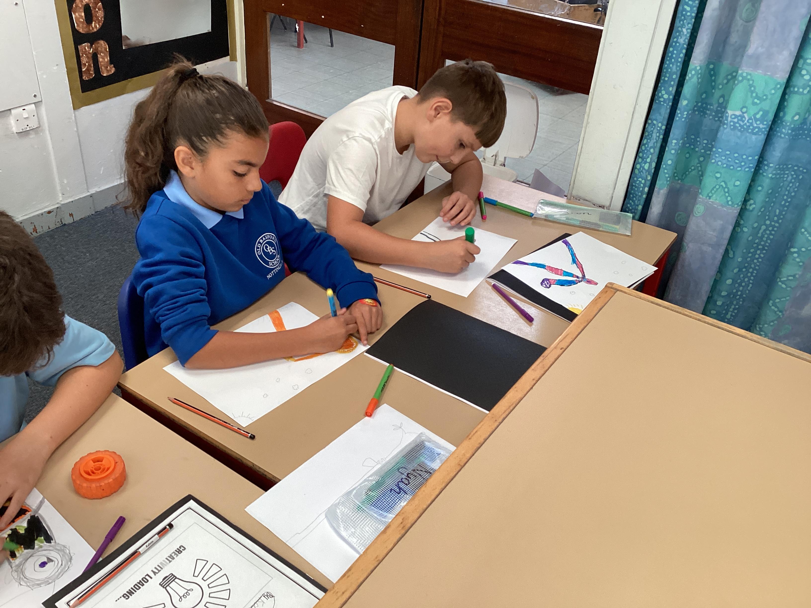 To start off our new 'Life on Mars' topic, Year 5 had a very creative day. We started by creating some alien art by using our name and listening to the very famous Gustav Holst's 'The Planets'. We then designed and created our very own spacecraft.