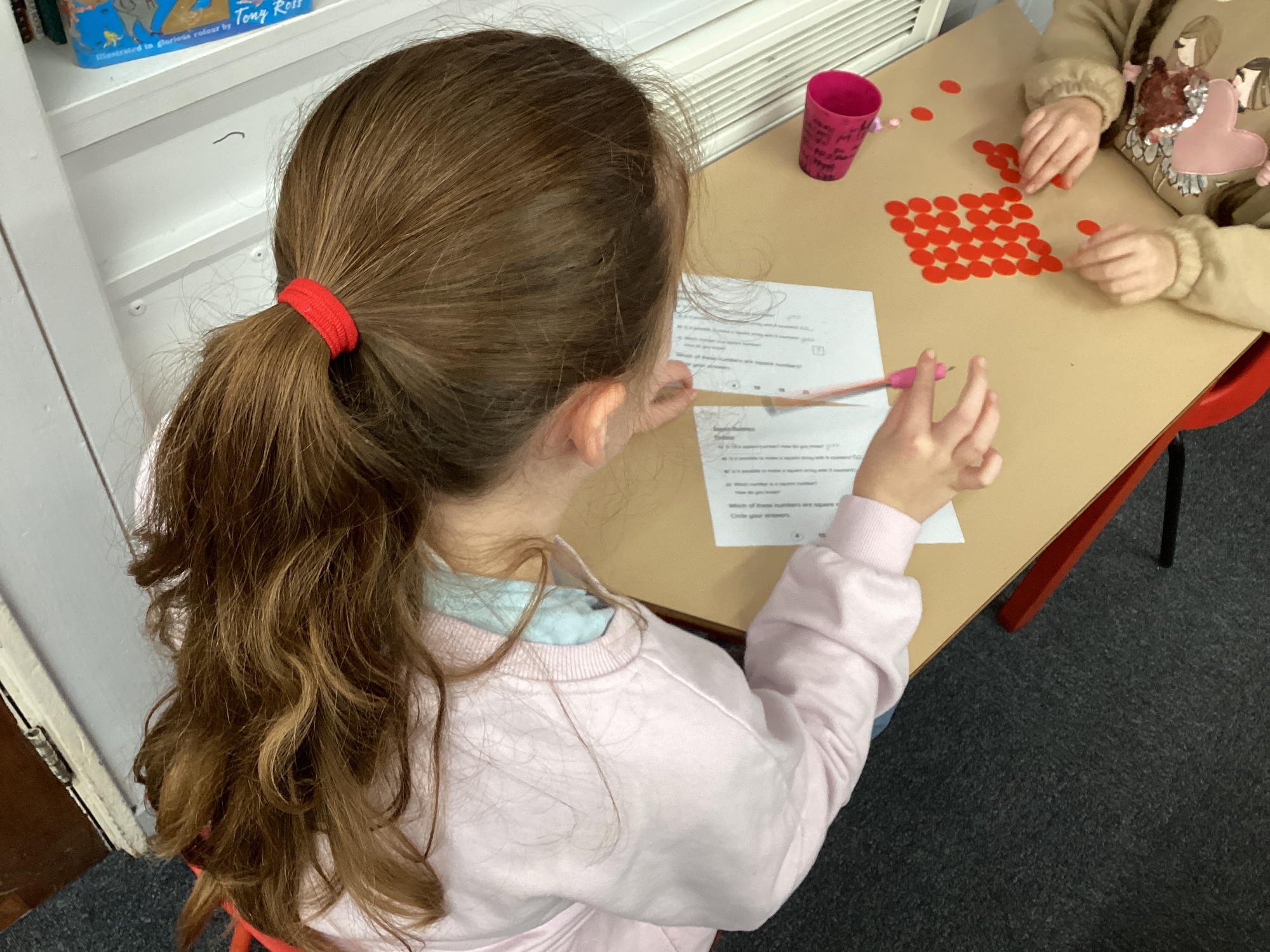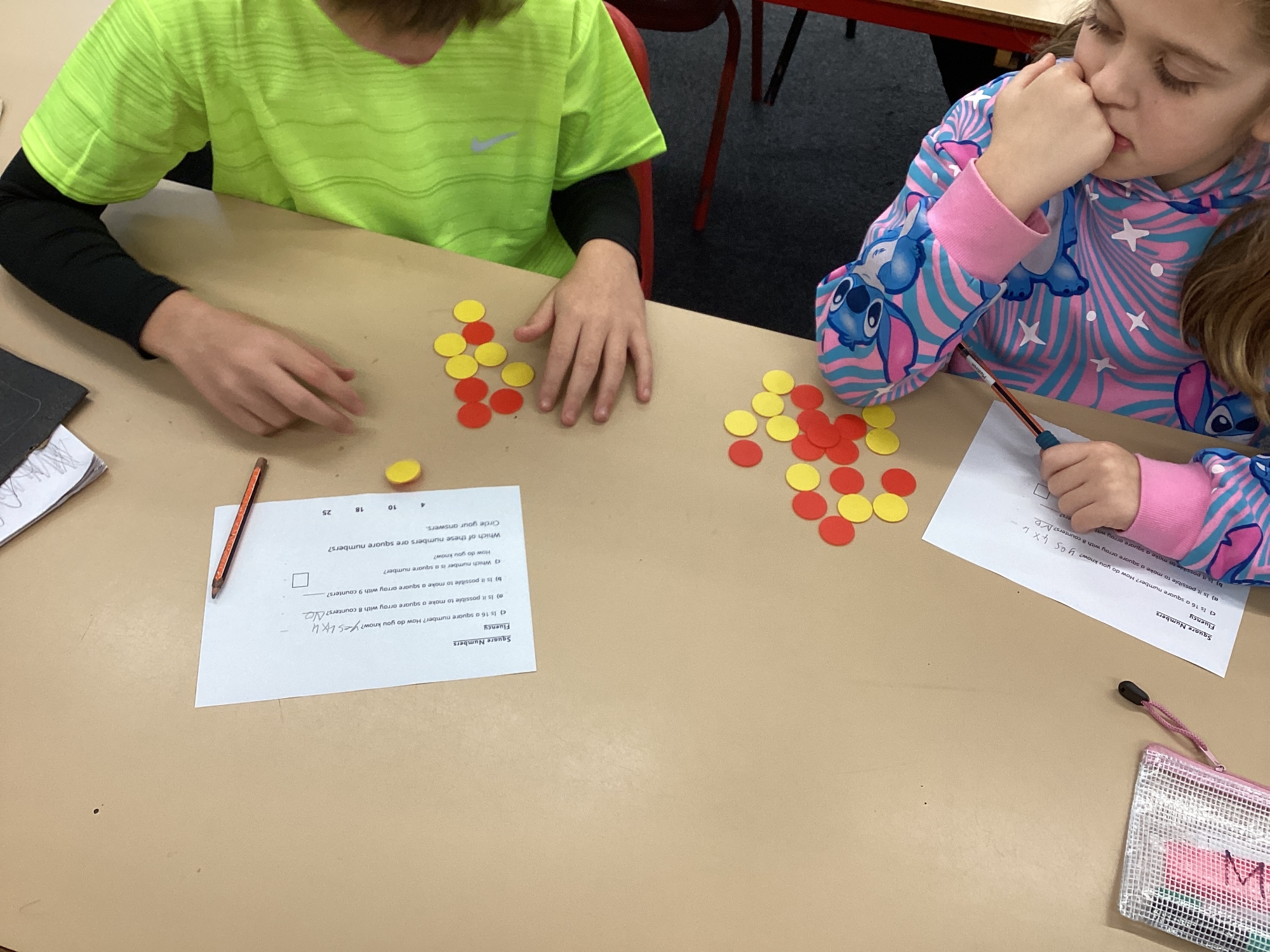 In maths this week, we have been looking at multiplication. To help our understanding, we got some counters out to find out what square numbers are and why they are called 'square' numbers.