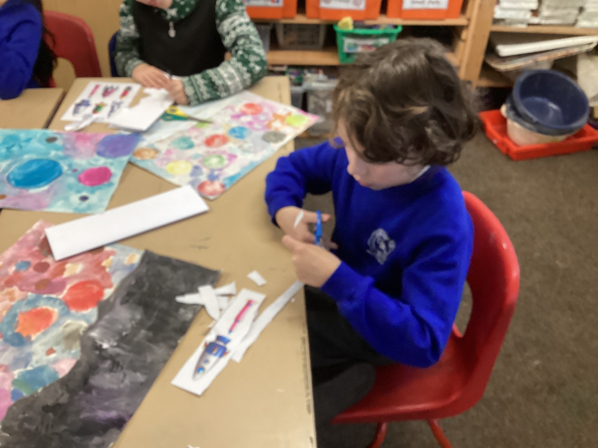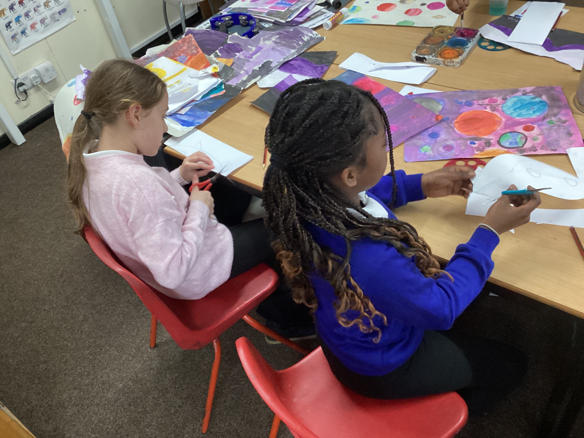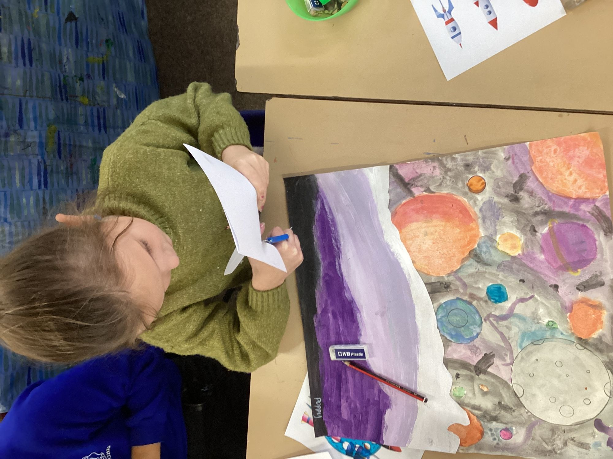 This afternoon, Year 5 continued with their amazing space art and have nearly finished their masterpieces.