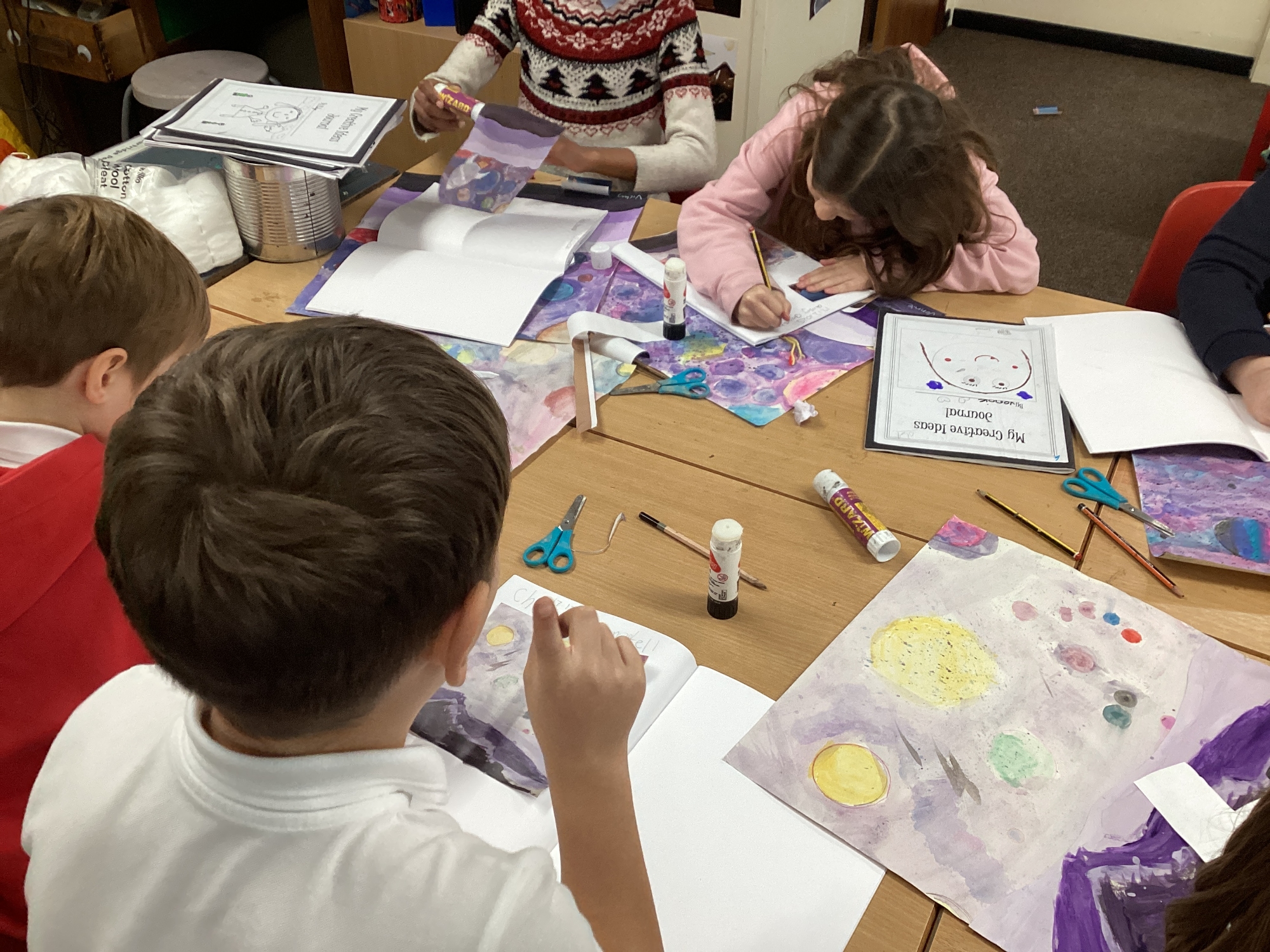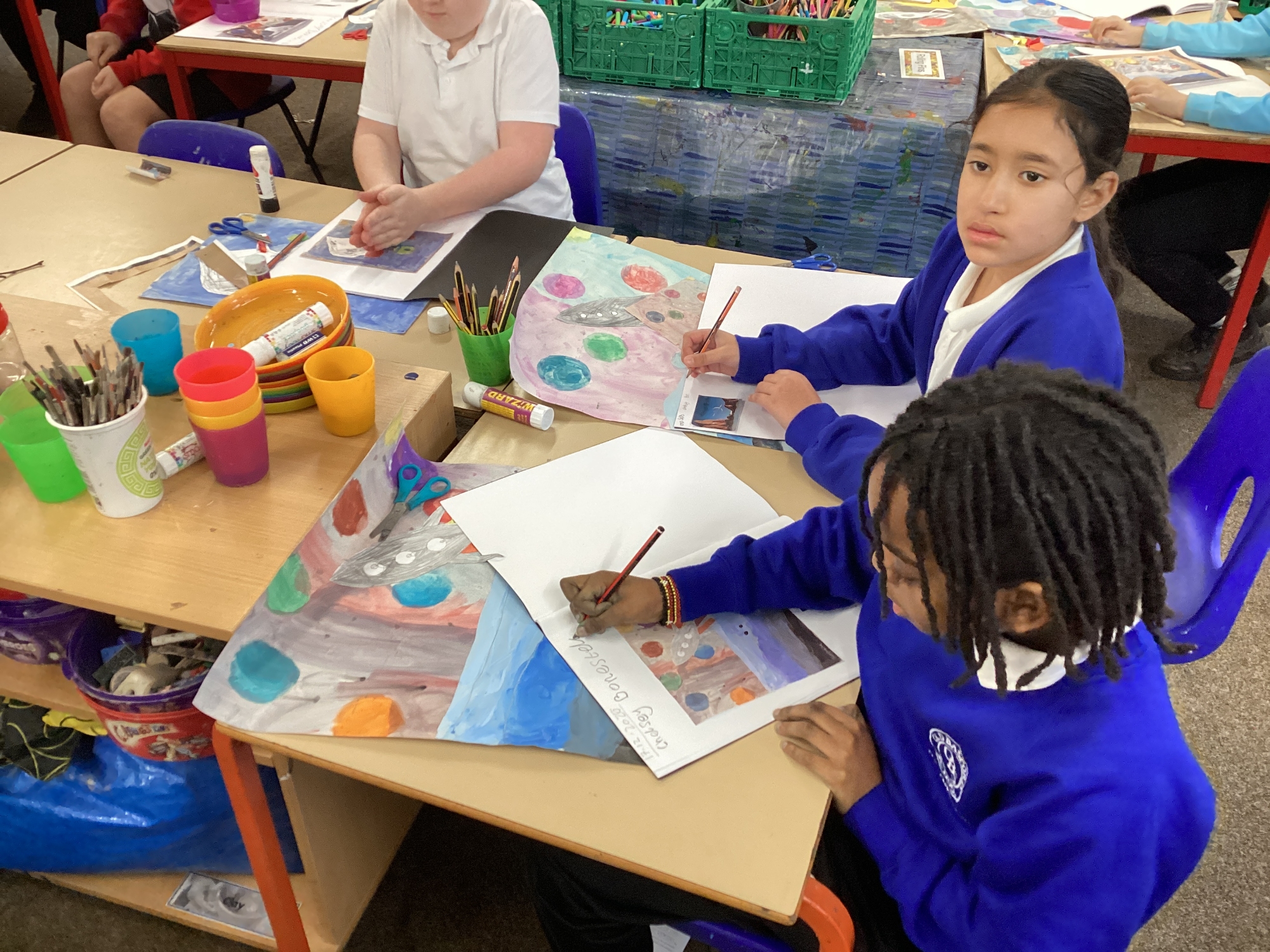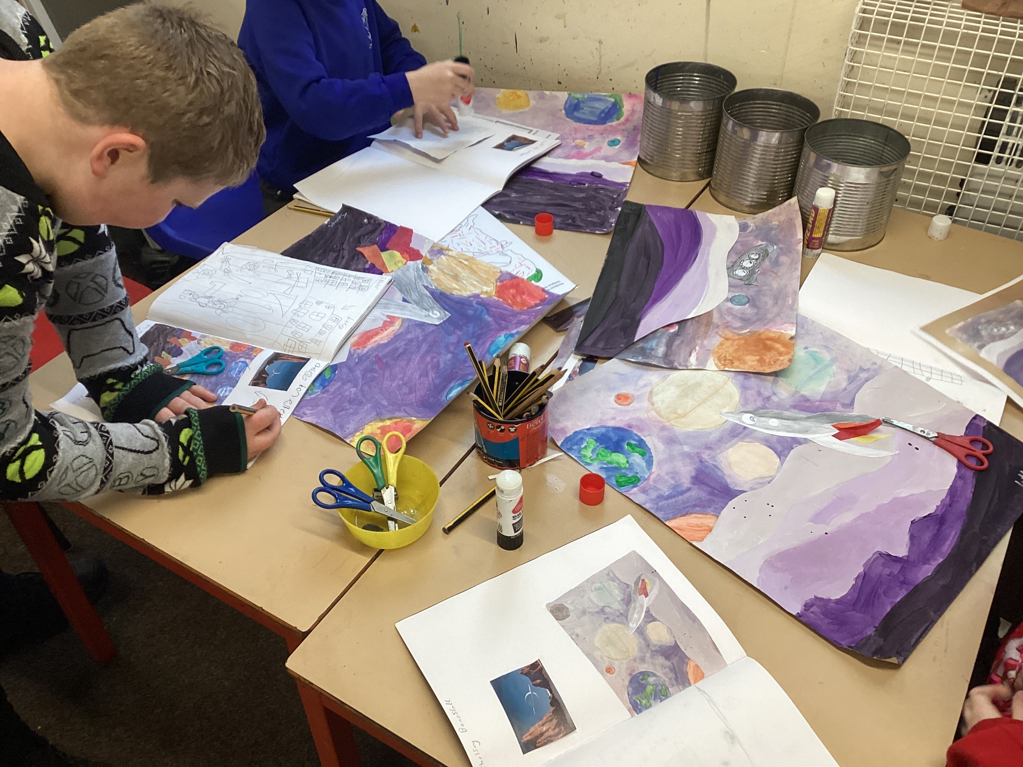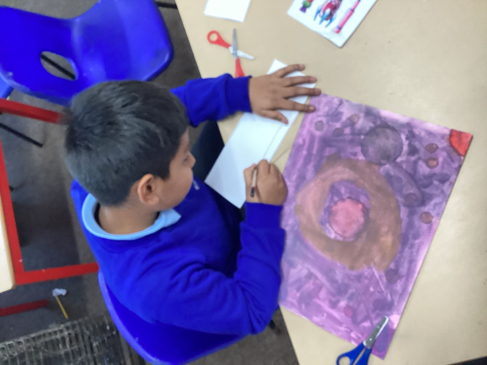 This afternoon, Year 5 continued with their amazing space art and have nearly finished their masterpieces.