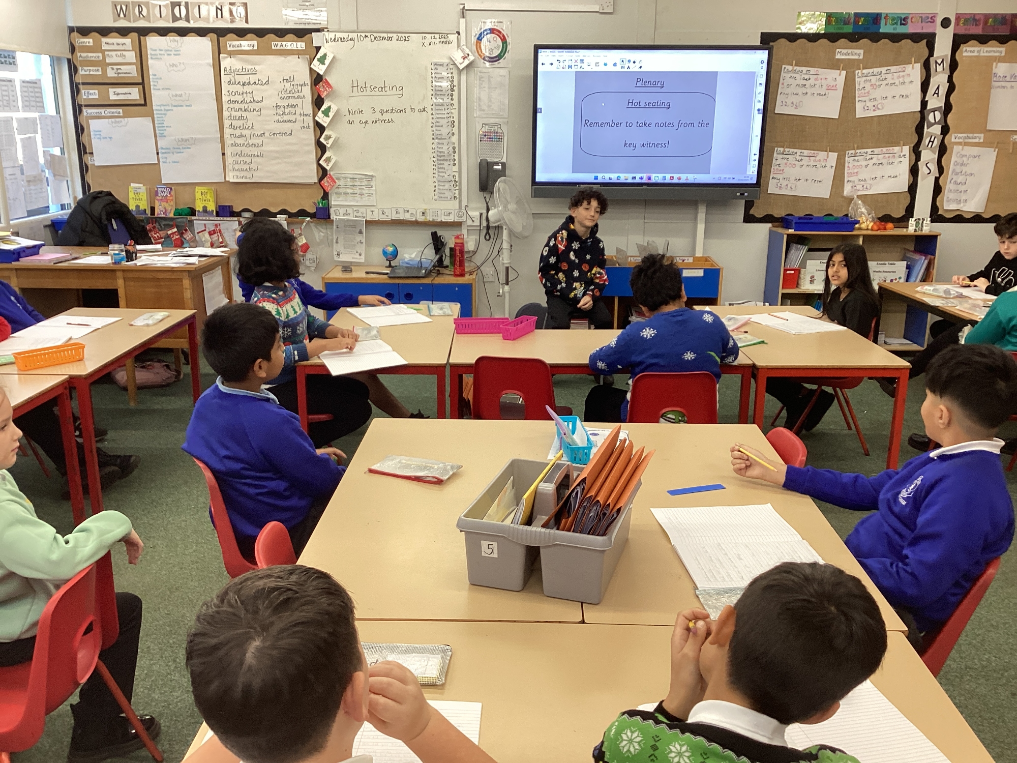 Today we have enjoyed using 'Hot Seating' to help us generate ideas to use in our News Transcripts that we will be writing next week. Our work is based on our Shared Reading book 'The boy in the Tower' by Polly Ho - Yen.