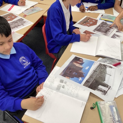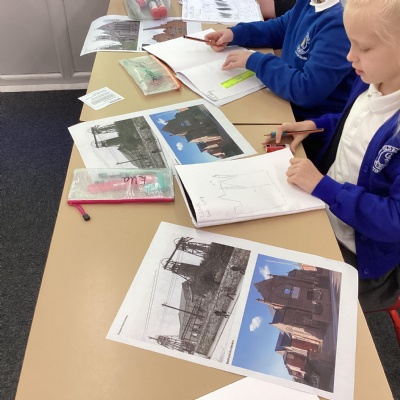 This morning, Year 5 created our very own tour of the local area. As well as sketching historical buildings in Old Basford like Basford House and St. Leos church, we also went outside to find out facts about them.