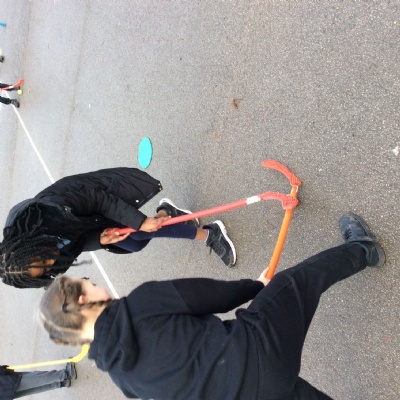 Today in PE, we continued to play hockey.