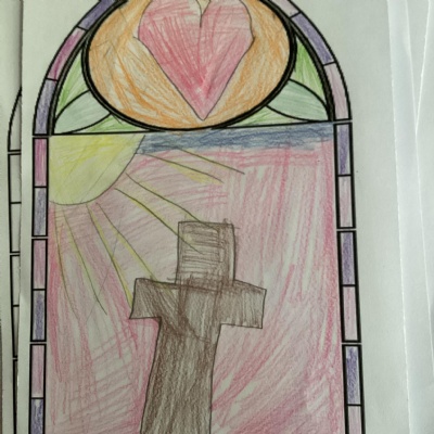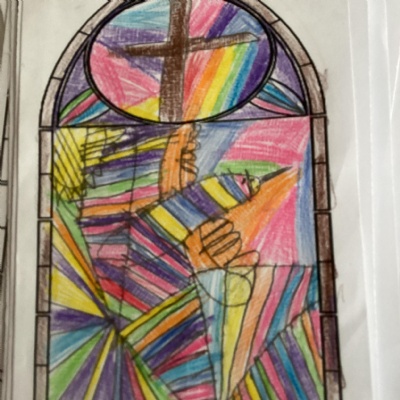 This afternoon, we looked at how Christianity is shown in a variety of artwork before creating our own design for a stained-glass window.