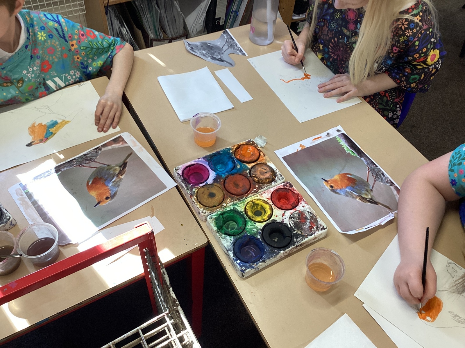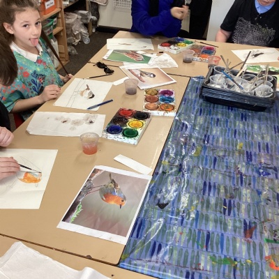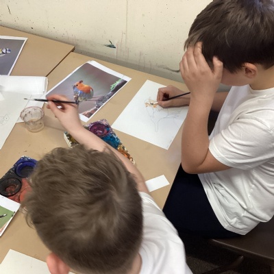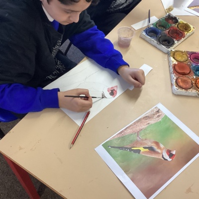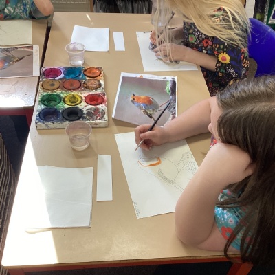 This afternoon in art, we spent time completing our sketches by adding colour with watercolours. The children carefully applied different techniques—such as blending and creating light washes—to bring their drawings to life. It was lovely to see them experimenting with colour choices and showing real pride in their finished pieces.