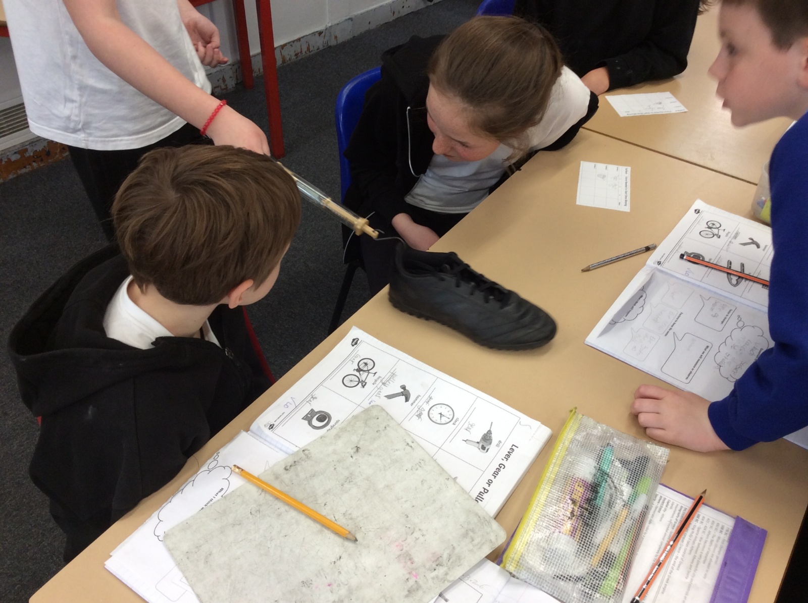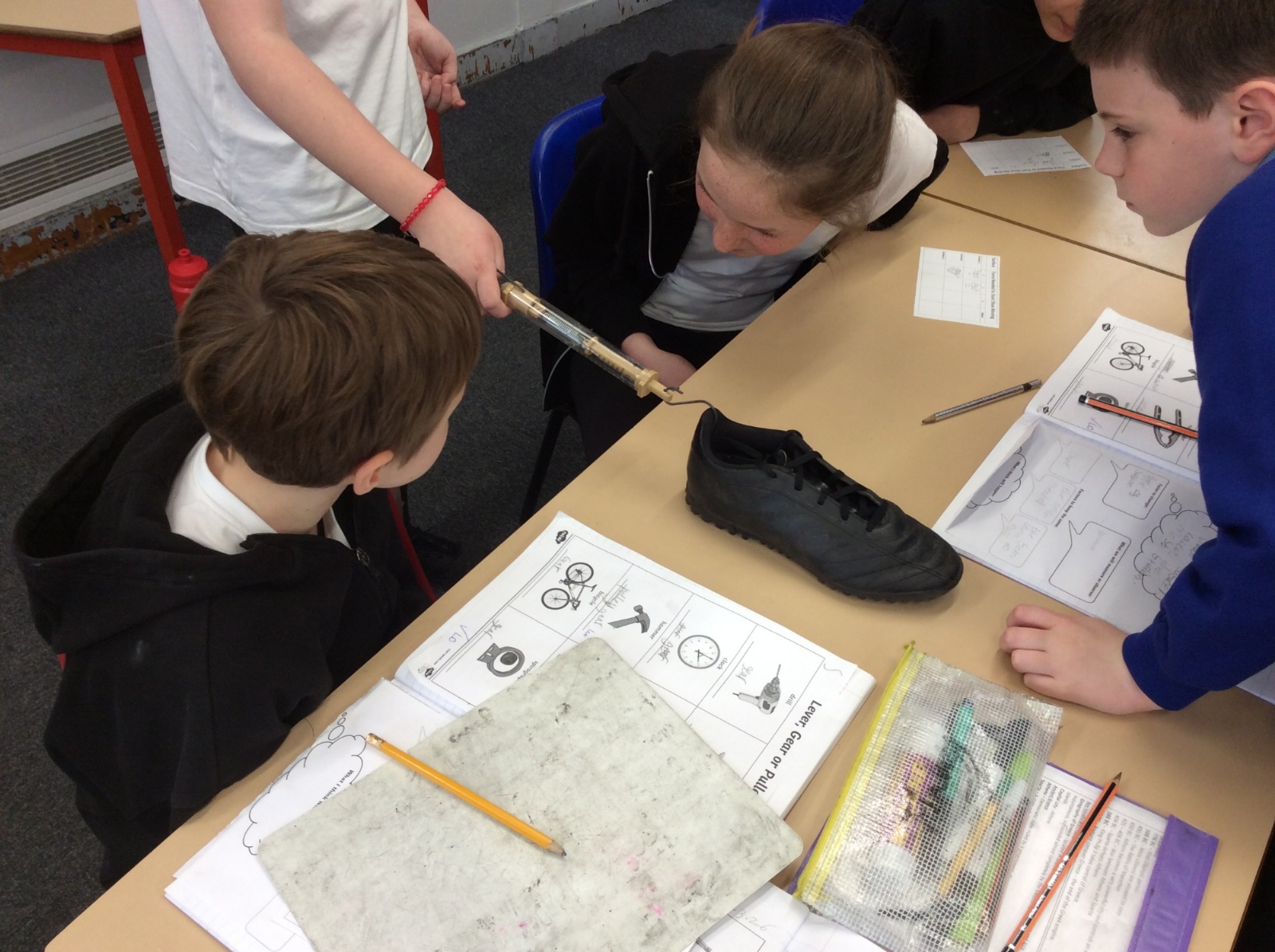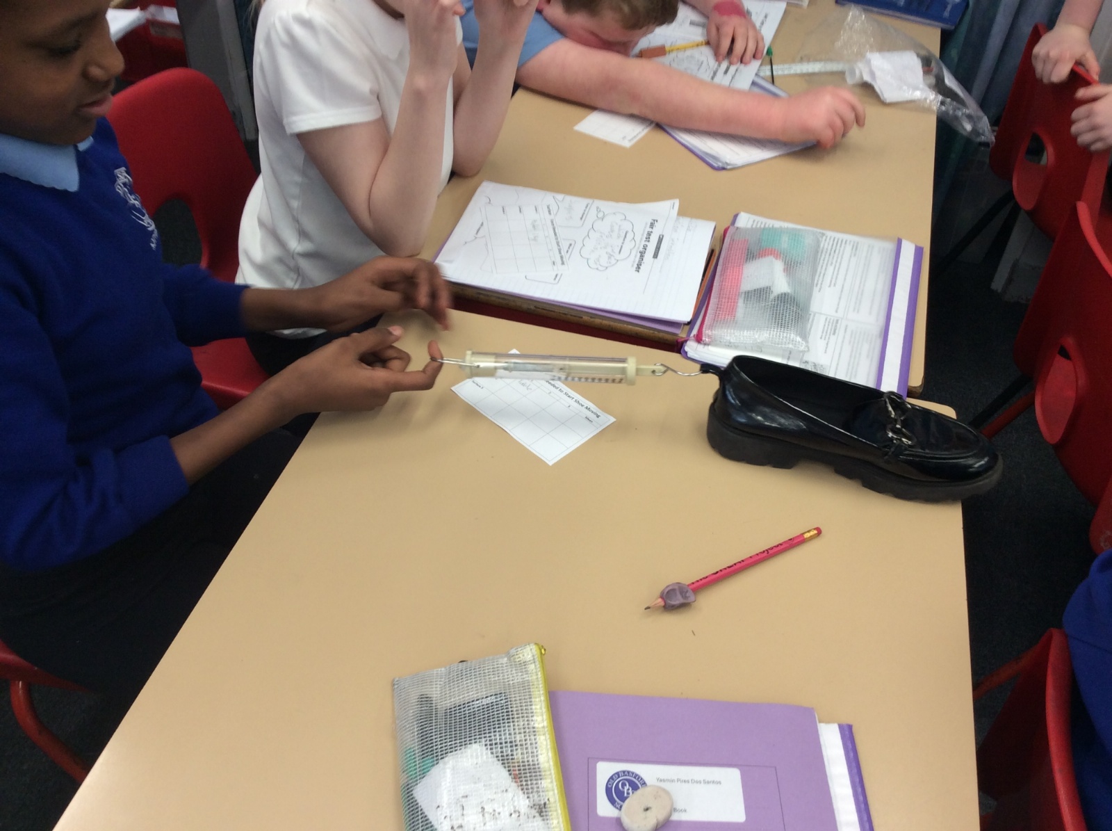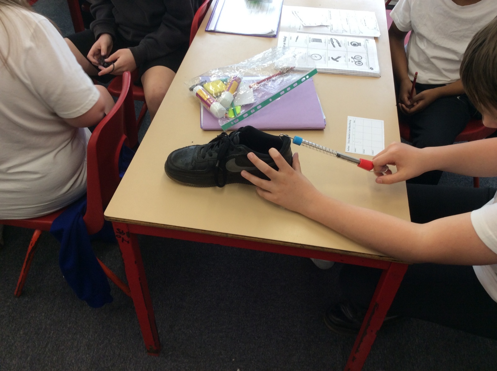 This afternoon, Year 5 planned and carried out an investigation into the friction caused by different surfaces.