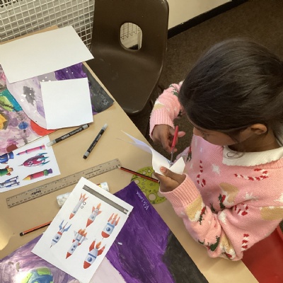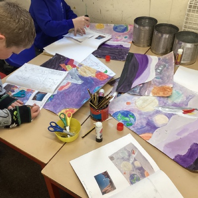 This afternoon, Year 5 continued with their amazing space art and have nearly finished their masterpieces.